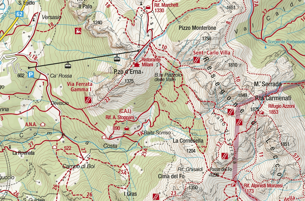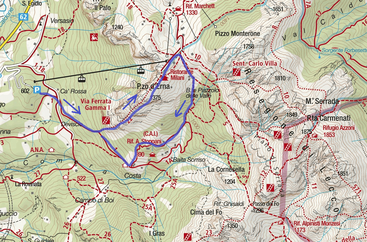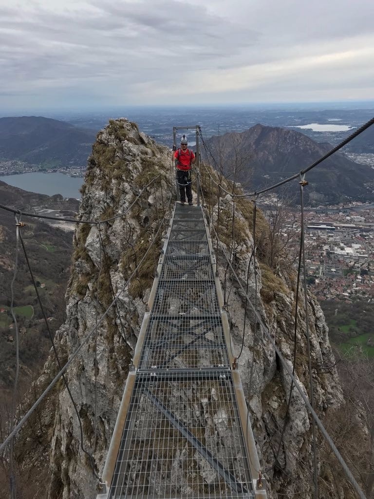 Storica ferrata appena sopra Lecco, che alterna bei tratti di arrampicata a scale interminabili, necessarie per superare esposte pareti difficilmente arrampicabili. Nel suo complesso comunque bella, roccia solida e ben appigliata , da affrontare in discreta forma in quanto abbastanza lunga, soprattutto se là si vuole concatenare con altre ferrate in zona. Consiglio di rientrare a piedi e non in funivia, l’escursione è piacevole.