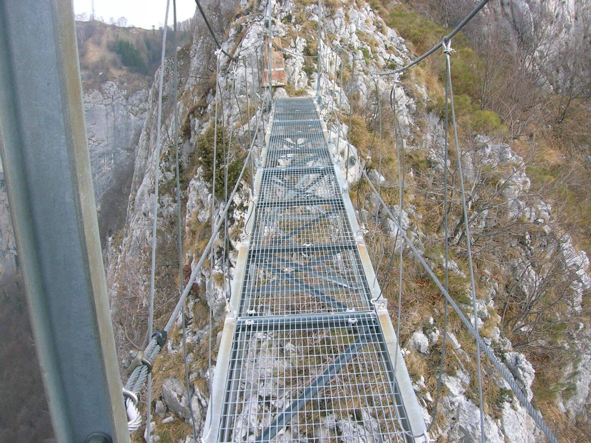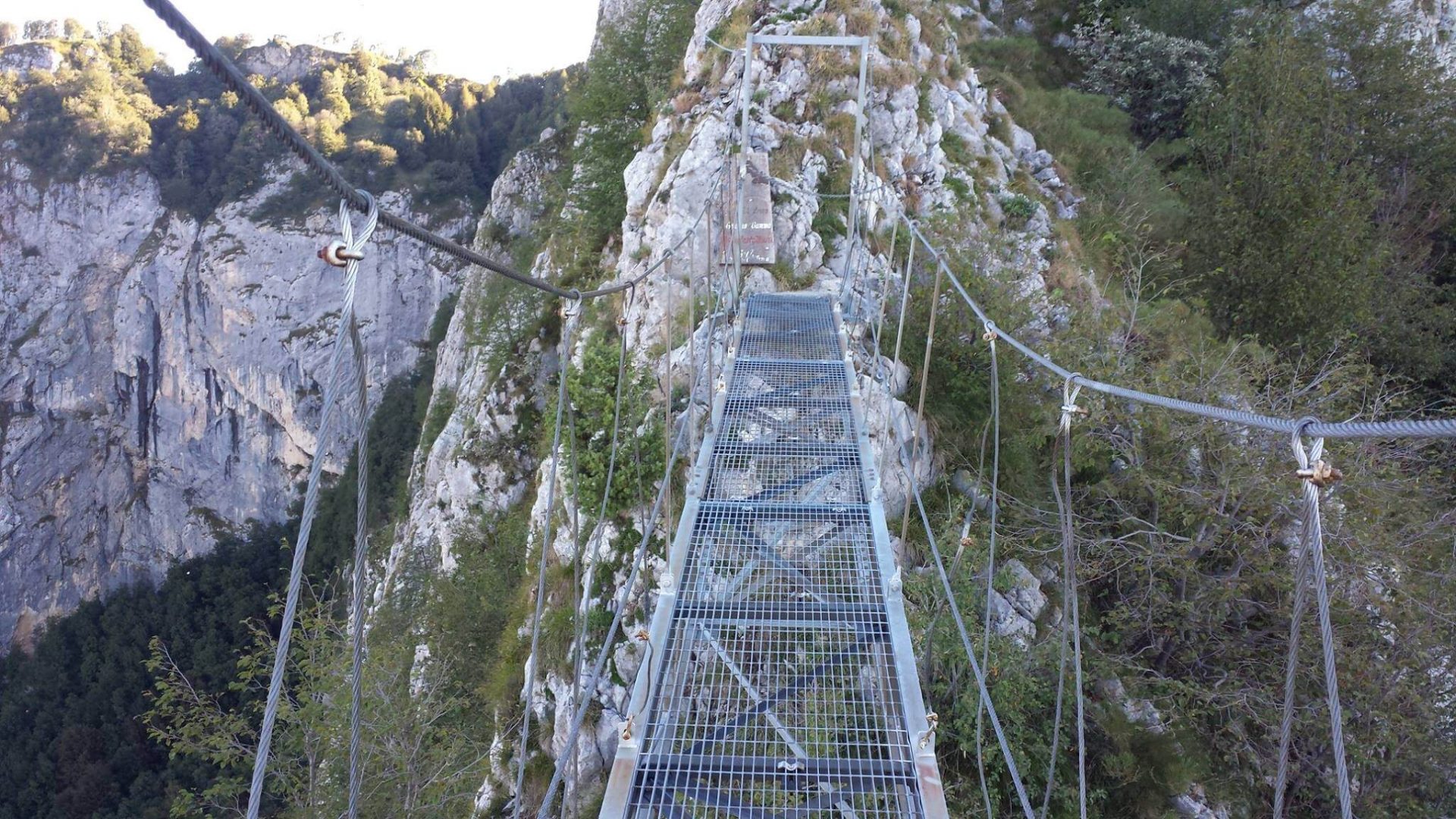 18/05/2022 alle 20:58percorsa maggio22, in settimana quindi molto tranquilla, ferrata nuova, bel cavo in acciaio nuovo, bello teso, con attacchi all parete vicino quindi la rende poco pericolosa in caso di caduta , il rovescio della medaglia e’ che devi attaccare e staccare i moschettoni in continuazione! appena di parte e bella, arrampicabile, ma dura poco si arriva alla prima scala, e da qui e’ fino alla meta’ dove c’e’ una via di fuga, e’ tutta una scalinata molto molto esposta, lunghe scale verticali una dietro l’altra, panoramiche, ma fondamemtalmente nessun divertimento. dopo il terrazzo con via di fuga verso lo stoppani inizia la parte migliore, arrampicabile, paretine appoggiate divertenti dove chi sa arrampicare usa poco la catena o comunque solo per sicurezza. poi si arriva al ponte sospeso evitabile, ma sconsiglio di evitarlo perché piu semplice del percorso alternativo. consiglio di assicurarsi alla fune con 3 rinvii oltre al kit in modo da essere piu tranquilli nell equilibrio e inoltre facilitano a livello mentale nella fase finale di sgancio e ancoraggio alla scala che e’ sfalsata a sinistra.