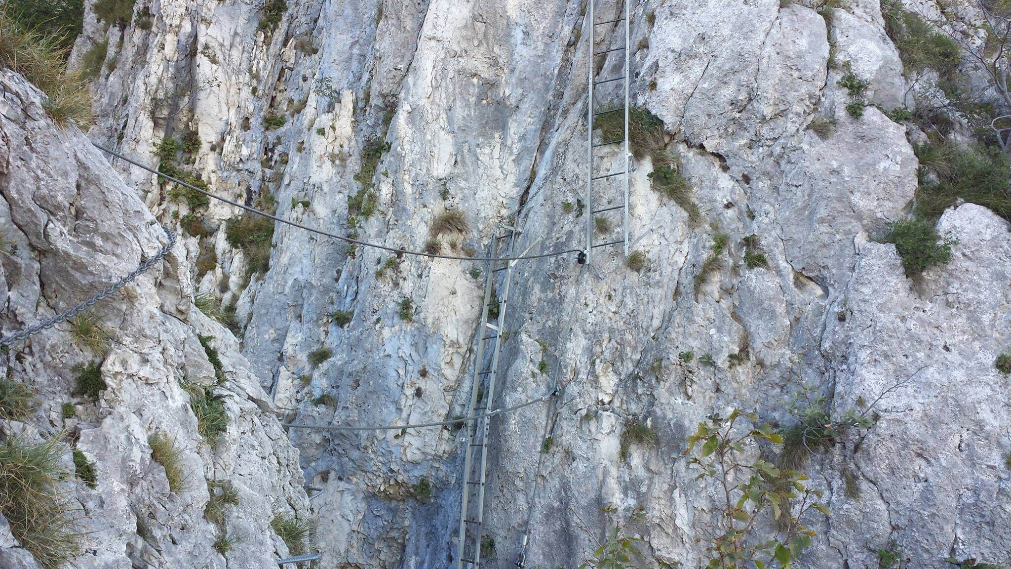 Ferrata discretamente lunga, molti tratti lunghi con scalette, il resto discretamente attrezzato, tutto quasi solo con catene, non mancano i punti di appiglio/appoggio dove necessario.