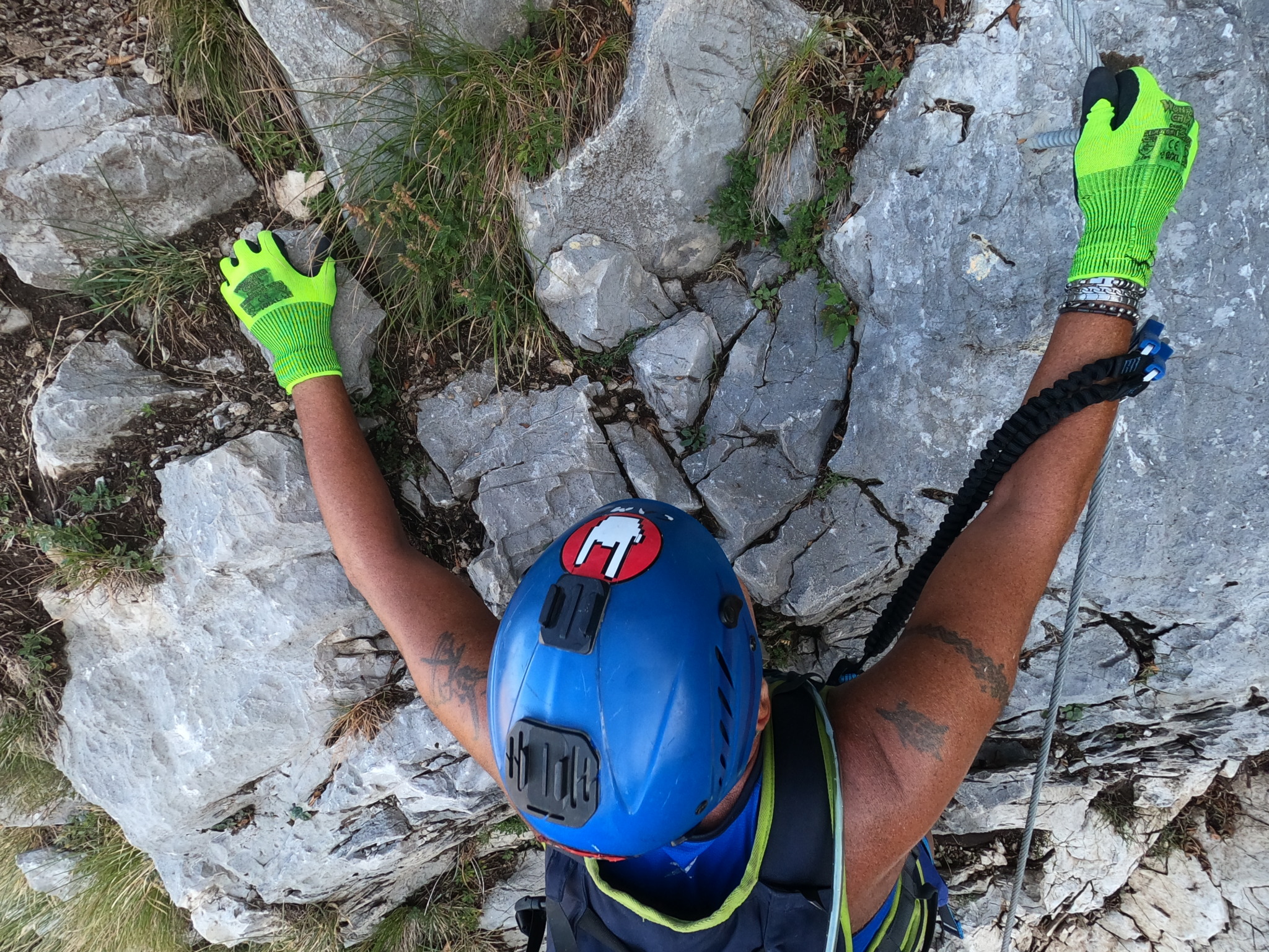 Questa ferrata me l’avevano consigliata di fare in successione con Gamma2 per concatenarle insieme e fare una bella esperienza. Ho ascoltato i consigli e mi sono divertito tanto, arrampicando un po’ ho usato veramente poco il cavo, giusto per una sicurezza in più. Molto panoramica e lunga da completare.